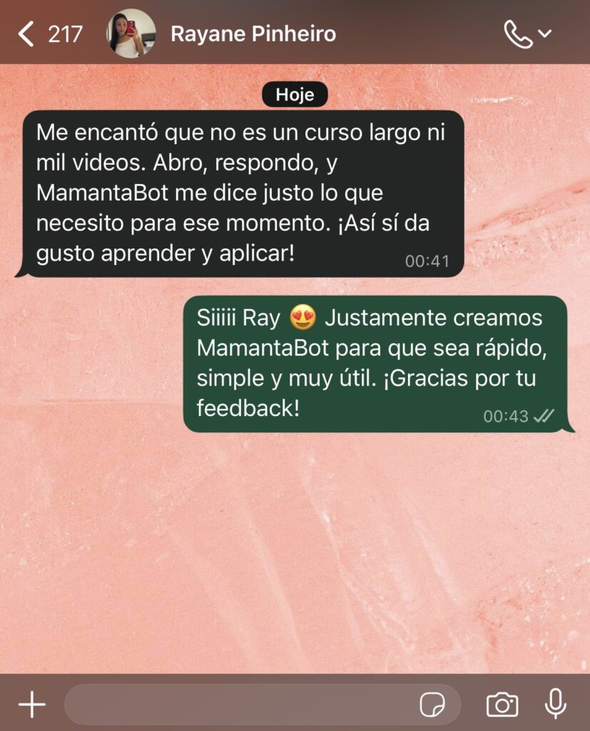 💡 Esto no es una guía más. Es una experiencia que empieza desde el primer mensaje de MamantaBot.
